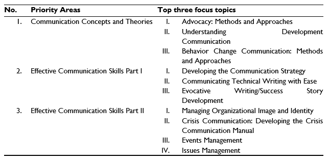 - Lastly, to equip IPs with complementary skills in communications to further enhance their ability to meet USAID’s reporting requirements and standards.