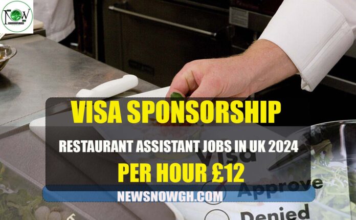 HomeVisa Sponsored JobsRestaurant Assistant Jobs in UK 2024 Visa Sponsorship (£12 per hour)